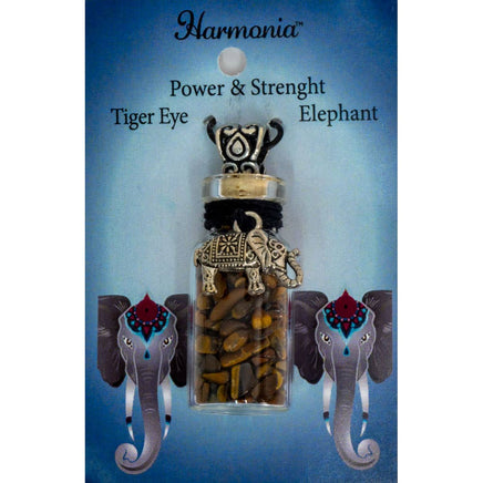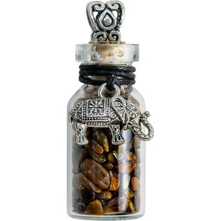 When you need a courage boost, wear this Gemstone Chip Bottle Pendant that merges the power of Tiger Eye with the strength of the mighty Elephant.