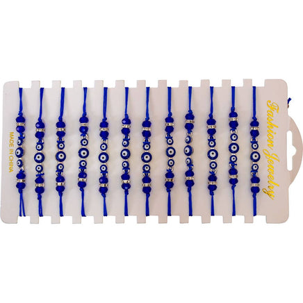 Adjustable Bracelets Blue Triple Evil Eye w/ Gems 12 Piece